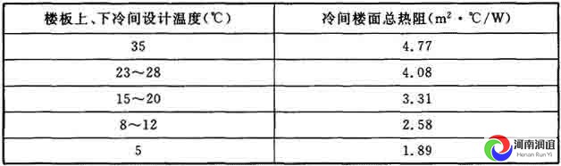 7 冷間樓面總熱阻可根據(jù)樓板上、下冷間設計溫度按表7的規(guī)定選用。