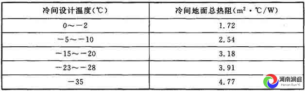 8 冷間直接鋪設在土壤上的地面總熱阻應根據(jù)冷間設計溫度按表8的規(guī)定選用。